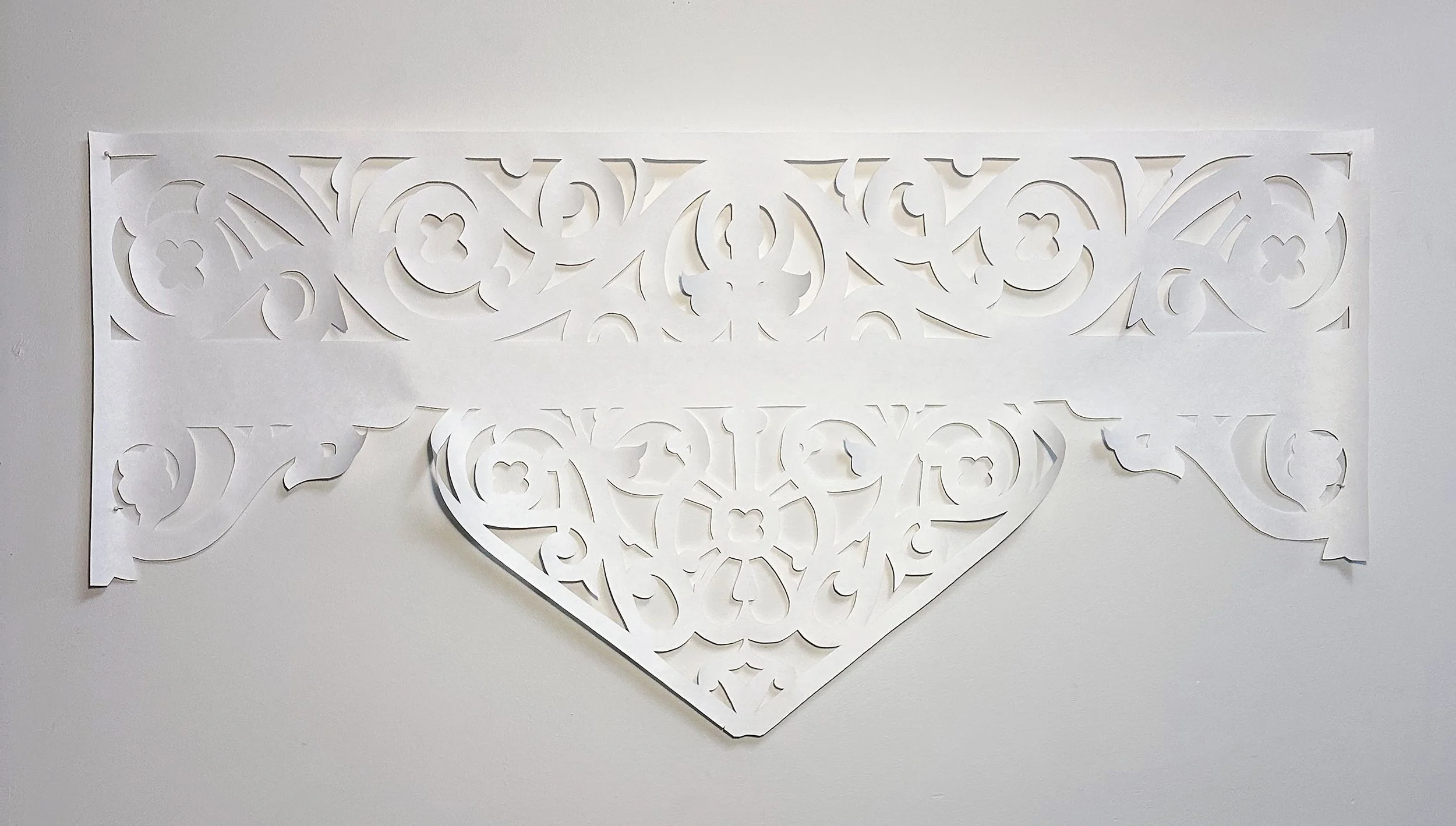Rei has used archival records that document the Japanese migration and labour in these industries as the basis for hand-cut washi paper artworks. She depicts sugar cane, pearls, shells, and turtles gathered by early Japanese migrants in Queensland. The delicate, white forms contradict the harsh conditions these harvests were collected within. The installation is also an ironic gesture to the White Australia Policy, which inevitably restricted the Japanese population in Queensland, forcing the Townsville Consulate to close.